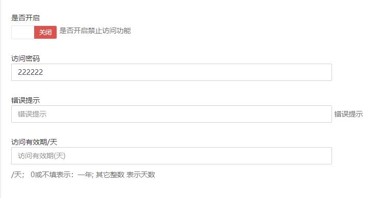 后台可一键设置是否开启,可以设置访问时间,简单方便